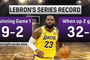 明日G2关键一战!当领先2场时 詹姆斯季后赛生涯系列赛32胜0负