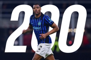 此役是邓弗里斯为国米出战的第200场比赛,他总计贡献25球26助,国米官方社媒晒出海报,祝贺他达成这一里程碑。