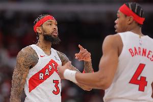 答: 我不知道。我们去年看到印第安纳步行者就利用了这一点,所以我不认为季后赛还有绝对的模式,比赛变化太大了。我不认为猛龙会改变打法,他们不会进来说“嘿,这是季后赛,我们要放慢节奏”。我觉得他们反而会加倍坚持自己的特点。所以,这对我们是个好挑战。